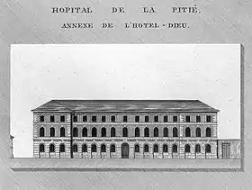 Ainsi, à Paris, dans les établissements de la Salpêtrière, la Pitié, Bicêtre[4], il s'agissait d'accueillir selon les termes mêmes de l'Édit de 1656 les pauvres « de tous sexes, lieux et âges, de quelques qualité et naissance, et en quelque état qu'ils puissent être, valides ou invalides, malades ou convalescents, curables ou incurables[5] ».