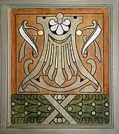 ![]() Fleuron en stuc et vitrail surmontant la porte du Museum Café |