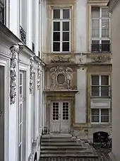 Le portail monumental donnant sur la rue Séguier, vantaux de porte inclus, et la façade du fond de la cour font l’objet d’une inscription au titre des monuments historiques depuis le [1].
