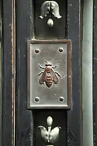 - des abeilles gravées sur des plaques en verre ajoutées dans le couloir du deuxième étage pour protéger le bas des murs, probablement lors de la restauration de 1990.