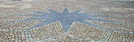La cour intérieure de l'hôtel de ville possède un pavement marqué d'une étoile qui indique le centre géographique de Bruxelles[12], identique à la place du Capitole à Rome.