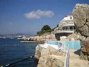 - le pavillon Eden-Roc, à flanc de rochers, surplombant la mer ;