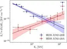 Cette source est probablement originaire du même objet que HESS J1702-420, et elle est aussi un candidat de source de rayons cosmiques provenant sûrement d'un PeVatron. Sa luminosité augmente au fur et à mesure que l'énergie augmente (fréquence observations)[2].
