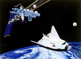 - Le Langley Research Center proposa lui un appareil à fuselage porteur, qui pouvait effectuer un atterrissage classique sur une piste en revenant de sa mission en orbite[3].