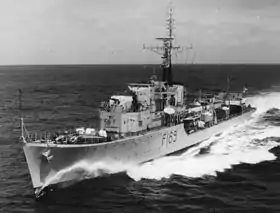 En 1954, il est convertie en frégate anti-sous-marine rapide de type 16 (en). Le nouveau pennant number F169 lui est attribué. Deux canons doubles Mk XVI de 102 mm guidés par un directeur tachymétrique simple ont remplacé ses cinq canons Mk V principaux de 102 mm. Un radar de recherche de surface / air de type 293 est installé, les charges de profondeur sont remplacées par des mortiers ASM doubles Squid Mk III. L’artillerie 40 mm Bofors Mk 5 et Mk 9 AA ont remplacé l'ajustement antiaérien original du vaisseau.