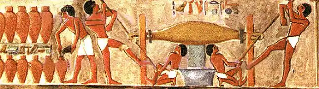 Les apirou (`pr.w en écriture hiéroglyphique égyptienne) figurent dans des textes à partir de la XVIIIe dynastie égyptienne. Les textes indiquent des apirou sont présents au Levant pendant le Nouvel Empire égyptien. Amenhotep II prétend avoir capturé 3600 apirou en une seule campagne[40]. Dans le récit de la Prise de Joppé (Jaffa), Toth, général du pharaon Thoutmôsis III, demande que son cheval soit rangé à l'intérieur de la ville, afin de ne pas se faire voler par un apir (Papyrus Harris 500)[41]. Deux tombes de la Nécropole thébaine du règne de Thoutmosis III représentent des apirou travaillant au pressage du vin (tombe de Pouimrê et tombe 155)[42].