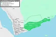 L'histoire politique de Hadramaout n'est pas facile à reconstituer. De nombreuses guerres impliquant Hadramaout sont référencées dans les textes sabéens. D'après leurs propres inscriptions, les hadramies sont connus pour avoir fortifié Libna (Qalat moderne)[3] contre Himyar et ainsi que Mwyt (Ḥiṣn al-Ghurāb moderne) contre le royaume d'Aksoum dans la période suivant la mort de Dhu Nuwas (525/527)[2].