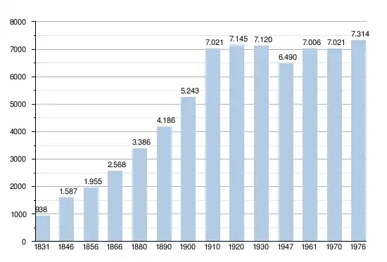 - Sources : INS, Rem. : 1831 jusqu'en 1970 = recensements, 1976 = nombre d'habitants au 31 décembre.