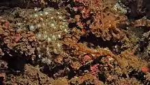 Son corps fin et allongé est doté de nageoires réduites difficilement observables. La teinte de son corps varie selon son environnement pour un meilleur camouflage. Elles vont du rouge au brun en passant par le vert et le jaune[2]. Le corps est parsemé de petites excroissances cutanées, formant comme des paires d'ailettes sur sa face dorsale en général au nombre de huit, ainsi que de petites taches blanchâtres et rosâtres irrégulières[3].