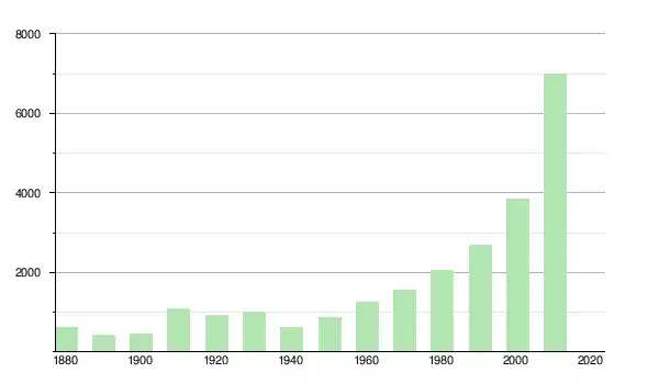 Selon le recensement de 2000[5], il y avait 3 857 habitants, 1 411 ménages et 1 049 familles résidant dans la cité.