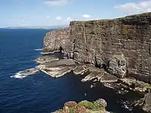 - Les falaises abritent une importante colonie d'oiseaux de mer, essentiellement constituée de guillemots de Troïl (la plus grande colonie de Grande-Bretagne), de petits pingouins, de macareux moines, de mouettes tridactyles, de pétrels fulmars et de goélands (goéland argenté et goéland brun). Les conditions difficiles (vents violents, embruns et déjections des oiseaux) limitent la flore, où l'on trouve notamment des ombellifères, des bruyères et la camarine noire.