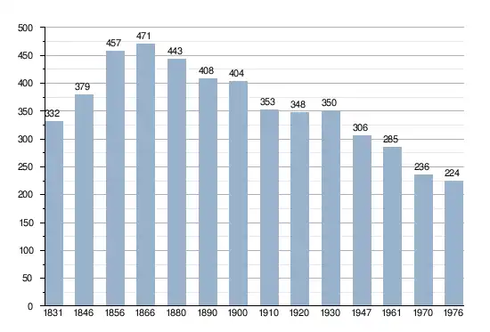 - Sources:INS, Rem:1831 jusqu'en 1970=recensements, 1976= nombre d'habitants au 31 décembre