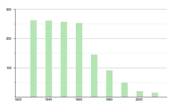 | 1940 | 261 | ▼ −0,38 % | |