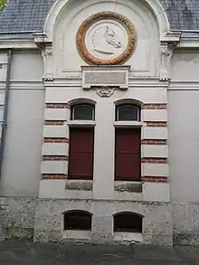 Enfin, de chaque côté de la grille entourant le parc, les pavillons d'entrée portent en médaillons une tête de percheron[15].