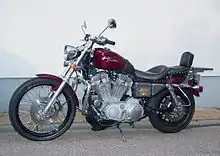 - XL883C Custom : réservoir custom plus large et plus plat, commandes avancées, selles duo, roues à fil de 21 pouces à l'avant et des roues pleines de 16 pouces à l'arrière.