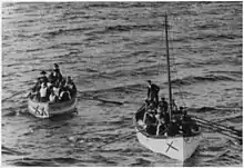 L'homme est cependant repêché. Par la suite, le canot attend trop longtemps, et ne trouve qu'une mer de cadavres. Lowe poursuit cependant les recherches et repêche un quatrième survivant, un steward qui s'était réfugié sur un panneau de bois[21]. Par la suite, le marin chinois que Lowe avait rechigné à repêcher prend un aviron et aide à la manœuvre, poussant l'officier à s'excuser de ses propos désobligeants[3]. Si Lowe est le seul à être revenu sur le lieu du naufrage, il est également le seul à avoir installé le mât et la voile de son embarcation. En chemin vers le Carpathia, il prend en remorque le radeau D, en difficulté[3]. Arrivé près du radeau A, en grande partie inondé, il embarque à ses côtés une vingtaine de passagers, laissant trois cadavres dans l'embarcation naufragée[22].
