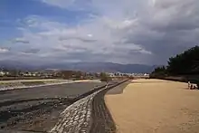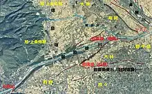 D'autre part, les conflits liés à la construction de canaux d'irrigation sont également fréquents[7]. En 1854, un conflit oppose le village de Kamitakasuna à trois autres villages au niveau du barrage de Shikamura (四ヶ村堰), et en 1858 et 1862, un conflit éclate entre les villages de Tamagawa (玉川村) et Nishihachiman (西八幡村), devenus le village de Tamahata (ja), actuelle ville de Kai, qui contrôlaient la rive nord de la Kamanashi, de l'autre côté du barrage de Sangamura[7]. En juin 1856, lorsque le village de Nishihachiman a traversé le canal du barrage de Sangamura pour puiser de l'eau, cela a entraîné un conflit avec cinq villages, dont le village de Kamitakasuna, qui a conduit à un appel en cour à Edo (aujourd'hui Tokyo), résolu en novembre de la même année[7].