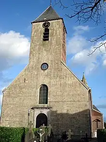 - L'église Saint-Michel (néerl. Sint-Michielskerk), classée monument historique depuis 1942, se compose, d’une part, d’un chœur de style roman (mais voûté de croisées d’ogives), de deux tourelles flanquantes se dressant de part et d’autre dudit chœur (dont seule la tourelle sud est restée intacte, l’autre, sur le flanc nord, n’ayant conservé que sa base), et d’une petite chapelle latérale, qui datent du XIe ou XIIe siècle et sont bâtis en grès ; et d’autre part, d’une nef de style classique, à trois vaisseaux de hauteur à peu près égale, et d’un clocher occidental carré, construits en brique en 1776 ; ce dernier couronne une façade occidentale classique à parement de grès. L’intérieur recèle : des fresques baroques ; un mobilier du XIIIe et XIXe siècle ; des tableaux du XVIIe siècle ; un monument funéraire, en marbre et pierre, de saint Liévin, avec gisant et fresques, datant du XVe siècle ; un trésor, comprenant une châsse de saint Liévin, en bois peint, du XVe et XVIe siècle[3].