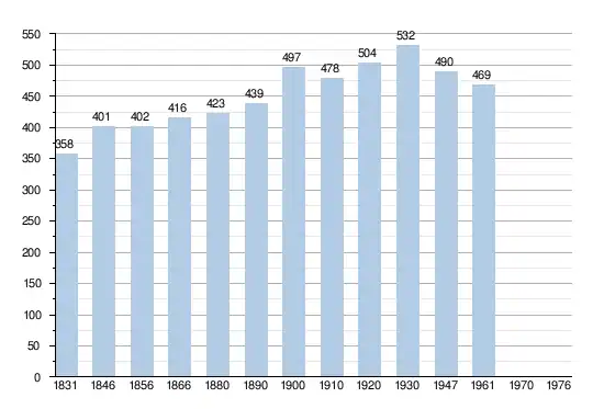 - Sources: INS, Rem.: 1831 jusqu'en 1970 = recensements, 1976 = nombre d'habitants au 31 décembre[2].