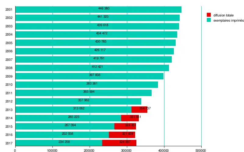 | Diffusion |  234 258 (2017)[1] 365 994 (2011)[2] ex. (2011, 2017) |