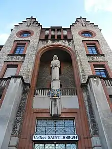 - La statue monumentale de Saint Joseph (vers 1939), sur la façade du Collège Saint-Joseph de Besançon, et l'Ange qui en surplombe le toit.