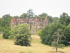 Latterly, Huth lived at Bolney in Sussex, in a château-style house called Wykehurst Place designed for him by Edward Middleton Barry and built between 1872 and 1874[3]. Construction cost £35,000, and the building has been described as "surely one of the most unlikely houses anywhere in Sussex". It was used as a base for soldiers during World War II, and has featured in several films[4]. Huth was buried in the churchyard of St Mary Magdalene's Church in the village, to which his son Edward gave a "magnificent" lychgate in 1905[5].