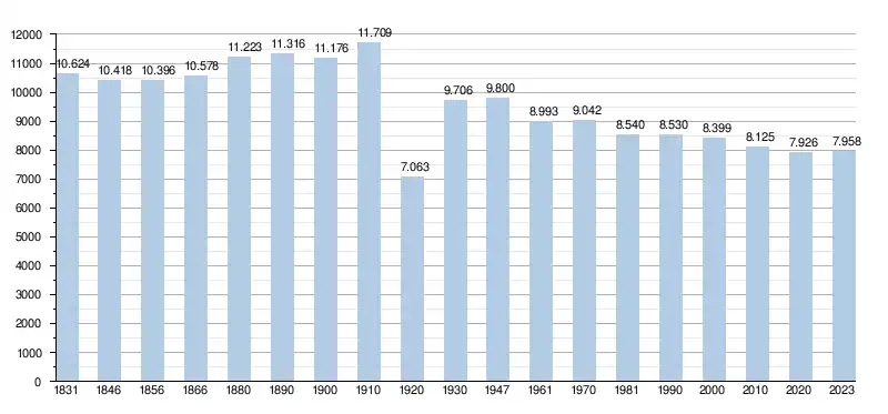 - Source : DGS - Remarque: 1831 jusqu'à 1981=recensement; depuis 1990=nombre d'habitants chaque 1er janvier[5]