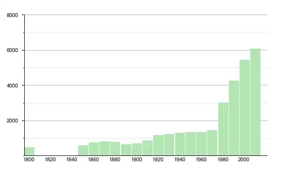| 1980 | 3 019 | ▲ +109,07 % | |