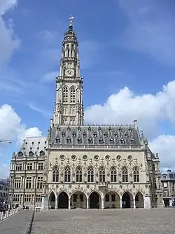 La loi du 17 avril 1919 sur la réparation des dommages causés par les faits de la guerre (dite « Charte des sinistrés ») imposait de reconstruire les monuments historiques à l'identique. Étaient concernés à Arras, le beffroi et les façades de l'hôtel de ville, les façades de la grand-place et de la place des héros, l'abbaye Saint-Vaast et la cathédrale[40].