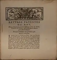 La Révocation de l'édit de Nantes (1685) entraîna l'émigration de nombreux fabricants de tissus et le début du déclin de cette industrie[b 22]. À partir de 1723, la monarchie publia plusieurs arrêts visant à combattre la fraude qui aggravait encore les difficultés de ce secteur[b 23]. Le , le roi Louis XV, par lettres patentes, prenait des mesures contre la fraude qui dépréciait les textiles fabriqués dans le Perche.
