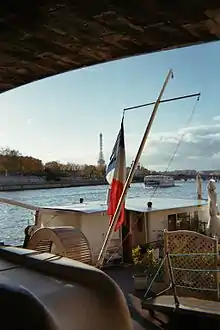 Les armes de Paris se blasonnent ainsi : De gueules à la nef équipée et habillée d'argent voguant sur des ondes du même mouvant de la pointe, au chef cousu d'azur fleurdelysé d'or Devise : « Fluctuat nec mergitur », ce qui signifie « Il flotte mais ne sombre pas ». Elle évoque le Scilicet, navire également représenté sur le blason de la ville et symbole de la puissante corporation des Nautes ou des Marchands de l'eau, gérante de la municipalité au Moyen Âge.