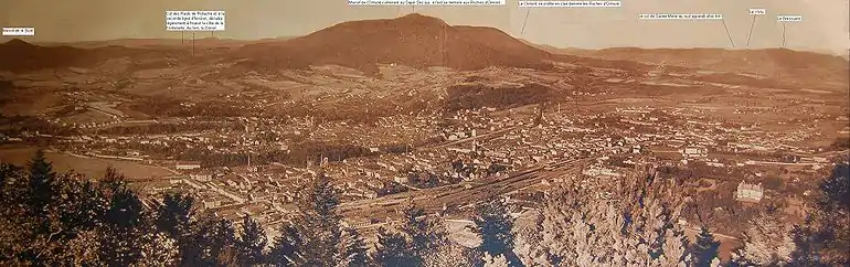 En 1944 la ville est traversée par le Schutzwall West. Le secteur de la montagne fin 1944 a été le dernier bastion du régime pétainiste[22]. Les hôtels de Saint-Dié et des maisons sont réquisitionnés. Radio-Paris essaie d’émettre ses dernières émissions depuis une antenne installée au sommet de Saint-Roch[n. 23].