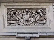 DE L'ÉCOLE POLYTECHNIQUEPOUR LA PATRIE Deux triangles bleus et deux triangles rouges, placés alternativement aux quatre angles, terminent le carré total. Ces triangles sont ornés de couronnes de laurier peintes en or. »