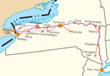 Elle ne se fondra qu'en 1897 dans l'Associated Press aura jusqu'aux années 1860[21] son siège à Utica (New York) où une ligne télégraphique venant de New York arrive le [22], permettant la publication de nouvelles récentes dans l'"Utica Gazette". Dès le lendemain, quatre journaux plus à l'ouest lui demandent de les partager par le train[22] et le , la New-York State Associated Press regroupe huit journaux sur les quinze situés à l'ouest de la route fluviale de Rochester et Syracuse, jusqu'à Buffalo[23]. Lors d'une réunion en juin, ils embauchent pour 15 dollars par semaine George M. Snow, qui couvrait Wall Street pour le New York Tribune depuis cinq ans un journaliste du New York Tribune pour leur résumer l'actualité[23]. L'association doit payer chaque semaine six fois ce salaire à la compagnie de télégraphe, 50 % de plus que le tarif espéré, la ligne étant achevée dès l'été 1846. Elle obtient en échange une qualité de service moins mauvaise que sur les autres lignes américaines. Un tiers des nouvelles reçues concerne les marchés financiers ou de marchandises[24]. Dès , l'un des journaux membres, l'Albany Argus, se plaint d'avoir reçu par le train de Boston un numéro de l'"European Times" d'Edward Wilmer comportant des cours des céréales européennes exagérés, différents de ceux reçus par le train précédent[25].