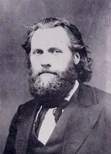 Première véritable forme d'organisation de l'internationalisme ouvrier, l'Association internationale des travailleurs est fondée en 1864 à Londres. La Première Internationale réunit les Trades Union Congress britanniques, des mutuellistes proudhoniens français, des militants ouvriers comme Eugène Varlin, des petits partis socialistes et des exilés, comme Karl Marx, qui rédige l'Adresse inaugurale[57] et des statuts provisoires[58], enfin un mouvement de protestation internationale d'inspiration républicaine contre la répression russe en Pologne[59].