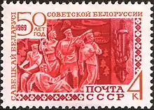 Le , des représentants de partis politiques et d'associations indépendantistes se réunissent à Minsk, profitant de la liberté que leur octroie l'occupant, et proclament la République populaire biélorusse[2],[5]. Cet État s'inspire des idéologies socialiste et nationaliste. La république ne parvient cependant jamais à contrôler la totalité du territoire et est balayée en 1919 par les bolcheviks, lorsque les troupes allemandes quittent le territoire. À la place est créée, le , une République socialiste soviétique de Biélorussie.