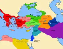 - Antiquité tardive (période « paléo-byzantine », v. 284/330-750/800) : mise en place progressive de la civilisation byzantine, autour de l'Empire romain d'Orient dirigé depuis Constantinople, de langue grecque, christianisation des pays de culture grecque, fin des institutions civiques antiques.