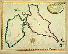 Parmi eux, Médéric Rolle de Gourselas, futur grand planteur de Martinique et le nouveau gouverneur de Marie-Galante, Constant d'Aubigné et sa fille Françoise de Maintenon. Constant d'Aubigné va à Marie-Galante avec Rolle, Jean Fris de Bonnefon et Michel de Jacquières, afin de créer une plantation après avoir consulté Charles Houël en Guadeloupe[56]. L'île n'est plus habitée que par les indiens caraïbes et quelques boucaniers irois (irlandais) vivant à leur contact, décrits dans les récits de sa fille. Une "Baie des Irois" existe toujours Marie-Galante, où des boucaniers sont notés dans les correspondances de 1645[57],[58]. Constant d'Aubigné (1585-1647) a bieu eu affaire à eux, selon une recherche de Louis Merle[59]. Les Irlandais ayant quitté leur île, étaient très souvent appelés "Irois" ou "hibernois", notamment dans les registres paroissiaux, actes de baptêmes et mariages du XVIIe siècle[60].
