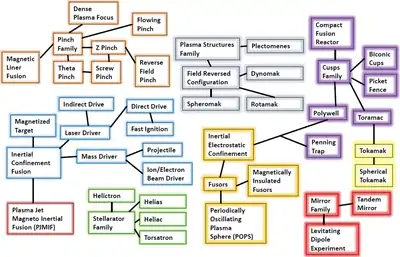 À la fin de la décennie, une équipe de l'Université Columbia et du MIT développait le dipôle en lévitation[87], un dispositif de fusion constitué d'un électroaimant supraconducteur, flottant dans une chambre à vide en forme de soucoupe[88]. Le plasma tourbillonne autour du dispositif en forme de tore et fusionne le long de l'axe central[89].