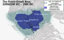 Il existe plusieurs théories à propos des origines du grec. Une théorie suggère que les premiers locuteurs de proto-grec auraient migré dans la péninsule grecque entre le XXVe et le XVIIe siècle av. J.-C.. Une autre théorie soutient que la migration en Grèce eut lieu à la période pré-proto-grecque (ancien proto-indo-européen), et que les modifications phonologiques caractéristiques du grec se sont produites plus tardivement.
