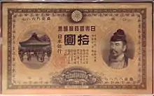 En 1881, est émis le premier billet de banque japonais qui représente un portrait, celui de l'impératrice Jingū note (神功皇后札)[2].