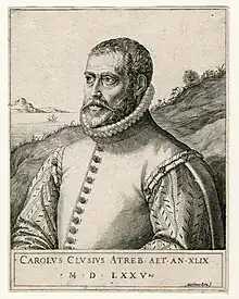 En 1601, Charles de l'Écluse (dit Clusius) publie dans son ouvrage Rariorum plantarum historia[42], une nouvelle description scientifique de la pomme de terre, appelée Papas peruanorum, qu'il assimile à l'Arachidna de Théophraste (identifiée en 1938 par Berthold Laufer comme Lathyrus amphicarpos[43]). Charles de l'Écluse avait reçu le [44], alors qu'il était encore à Vienne, deux tubercules et un fruit de pomme de terre envoyé par Philippe de Sivry, gouverneur de la ville de Mons en Pays-Bas méridionaux (il en deviendra le prévôt (Ancien Régime) à la mort de son père Jacques en 1691[45]). De Sivry avait lui-même reçu[46] des tubercules l'année précédente (1587) du nonce apostolique et légat du pape Sixte V, Giovanni Francesco Bonomi[45] (1572-1587[47]) évêque de Verceil, qui les nommaient « Taratouffli »[48],[N 8]. En cultivant ces deux tubercules, Clusius en obtint d'autres, ainsi que des graines, en quantité suffisante pour en distribuer à d'autres naturalistes de l'époque avec lesquels il était en relation[49], en Autriche, en Allemagne et en Italie notamment à l'université de Padoue[50], ce qui lui vaut d'être considéré comme le « propagateur de la pomme de terre » à la fin du XVIe siècle.