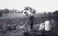 En 1757, on la trouve cultivée en Bretagne, alors en période de disette, dans la région de Rennes par Louis-René Caradeuc de La Chalotais[95], bientôt suivi dans le Léon par monseigneur de la Marche, surnommé « l'évêque des patates » (eskob ar patatez)[96]. Jean-François Mustel, agronome rouennais (auteur d’un Mémoire sur les pommes de terre et sur le pain économique)[97], encourage sa culture en Normandie, et en 1766 on cultive la pomme de terre à Alençon, à Lisieux et dans la baie du Mont Saint-Michel[98].