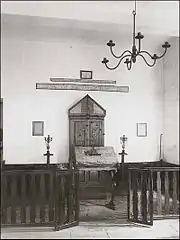 Le siège du prophète Élie est juché sur une console à droite de l'Arche Sainte.