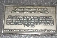 Sur la façade du bâtiment, une plaque commémorative déclare « De ce bâtiment 146 enfants juifs sourds furent arrêtés par des bandits fascistes en 1946 et assassinés. En souvenir des morts et comme exhortation aux vivants »[35]. L'institution est alors un succès, au point qu'elle inspire la création de la première école secondaire pour sourds dans l'état de Prusse, et accueille des élèves sourds de l'étranger[34].