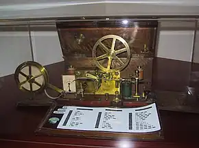 Le premier service commercial de télégraphe électrique fut construit par Charles Wheatstone et William Fothergill Cooke, et ouvrit en 1839[11]. C’était une amélioration du télégraphe électromagnétique déjà inventé auparavant[12]. Samuel Morse développa indépendamment une version de télégraphe électrique, qu’il montra pour la première fois le . Le télégraphe de Morse représentait une avancée importante par rapport au télégraphe de Wheatstone, en raison notamment du code et du dispositif de transcription sur papier utilisés.