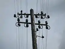 Les liaisons sur grandes distances (bien souvent les liaisons entre bureaux de poste) étaient effectuées par de gros fils de cuivre fixés sur de gros isolateurs eux-mêmes fixés sur des poteaux en bois courant le long des petites routes de campagne. Il y avait également des liaisons interurbaines entre les grandes villes, ces lignes étaient installées le long des voies ferrées importantes qui reliaient également ces mêmes villes. Ces voies ferrées avaient donc des poteaux et des fils de chaque côté de l'emprise, d'un côté une nappe PTT et de l'autre, une nappe des chemins de fer[13]. Les liaisons sur courtes distances (souvent des abonnés du villages reliés au bureau de poste à quelques centaines de mètres de là) étaient effectuées sur de petits fils en alliage cuivre nus attachés sur de petits isolateurs fixés sur des structures de poutrelles métalliques scellées sur les façades des hautes maisons de bourgs.