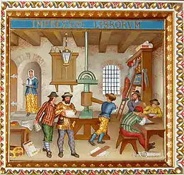 Le XVe siècle vit par exemple la mise au point de l'imprimerie à caractères mobiles (la « typographie ») par Gutenberg. Soucieux de préserver autant qu'il se peut les secrets de ses recherches, contraints à des emprunts monétaires importants, il est en quelque sorte l'archétype de l'entrepreneur. Son objectif est de répondre à une demande insatisfaite : la demande de culture des esprits de moins en moins analphabètes de la Renaissance. Au besoin de publications à grande échelle de livres majeurs va rapidement suivre la demande d'une production plus diversifiée. La diffusion de Bibles à usage personnel contribue à l'essor de la Réforme, tandis que celle-ci accroît en retour la demande. En partie permise par les progrès de la métallurgie, la typographie lui fournit en retour des débouchés. Intérêt pour la mécanique, prémices de « standardisation », productions de grandes séries, soucis de la « productivité » et esprit d'innovation. S'il faudra bien attendre des avancées similaires dans l'industrie textile pour connaître le décollage industriel, l'imprimerie montre bien que les mécanismes économiques du capitalisme sont plus anciens. Au sujet de l'imprimerie, Max Weber fait remarquer qu'elle existait depuis bien longtemps en Chine et sûrement en Inde, mais comme de nombreuses techniques, héritées parfois de l'Antiquité (la force de la vapeur était par exemple connue dans l'Égypte antique et le béton était connu des romains[12]), elle a dû attendre de pouvoir s'insérer dans un ensemble de techniques cohérentes et complémentaires pour pouvoir s'imposer. Elle ne le fit d'ailleurs pas sans rencontrer d'opposition, notamment de la part des copistes médiévaux.