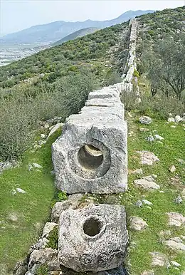 Les cités helléniques étaient généralement alimentées par des puits ou des sources, la cité d'Érétrie avait une canalisation qui partait de l'Acropole et longeait l'avenue principale afin d'aller alimenter une fontaine publique[79]. Concernant la période hellénique, de nombreuses sources archéologiques sur les jardins et leurs jeux d'eau, ainsi que sur les fontaines publiques sont disponibles ; mais il y a peu d'informations sur la nature des tuyauteries utilisées : poterie, plomb, cuivre. Les eaux après captage étaient dirigées par des aqueducs ou des tunnels, jusqu'à des citernes légèrement en hauteur. Depuis les citernes, des réseaux en poteries enterrées et en pierre, protégés au-dessus par des dalles de pierre, amenaient l'eau par gravité vers des fontaines publiques. La sortie de l'eau se faisait généralement par une tête d'animal en bronze ou mascaron[80].
