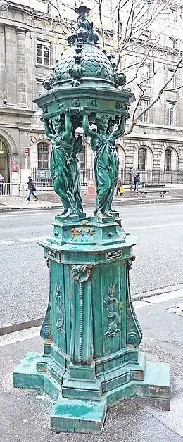 - Pierre-Simon Girard, Mémoire de L'Académie Royale des Sciences de l'Institut de France, tome XII de 1933, « Les établissements de bains publics depuis le VIe siècle », page 450 et suivantes. Adrien-Louis Lusson, architecte des travaux publics, « Projets de trente fontaines pour l’embellissement de la ville de Paris », 1835.